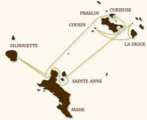 Cette croisière permet de découvrir les îles granitiques les plus célèbres : Mahé - Cousin - Cocos Island - La Digue à découvrir en vélo ou en char à boeufs - Cousin réserve naturelle et ses tortues géantes - Praslin et la Vallée de Mai - Grande Soeur - Curieuse - Mahé.